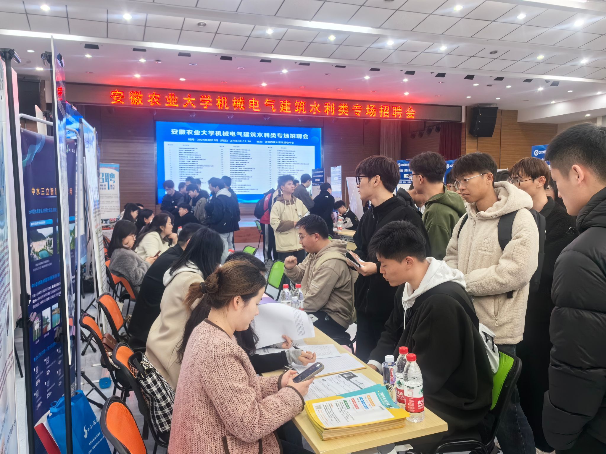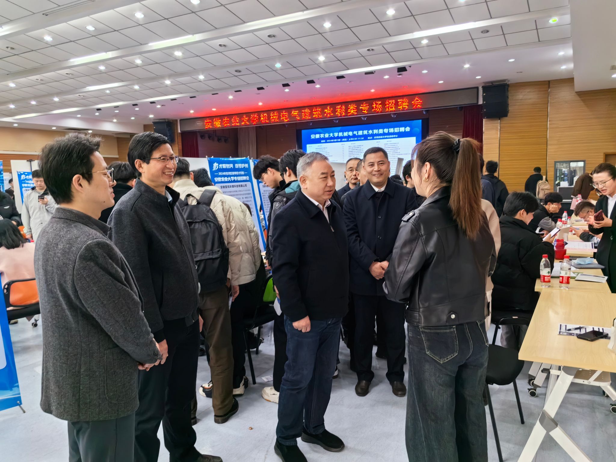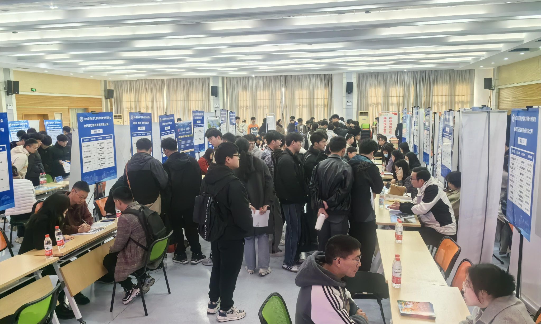 招聘会上,来自省内外机械装备、建设工程、水利水电、电子信息等领域的共计64家优质企业为毕业生提供1715个就业岗位。其中,合肥市包河区29家骨干企业组团参加了本次招聘会。招聘会现场气氛热烈,毕业生们拿着自己精心准备的简历,积极与招聘人员交流,主动了解有关工作要求、岗位需求、薪资待遇等情况。用人单位也纷纷展示了自己的企业文化和招聘需求,向同学们抛出橄榄枝,部分同学也在现场与用人单位达成初步意向。