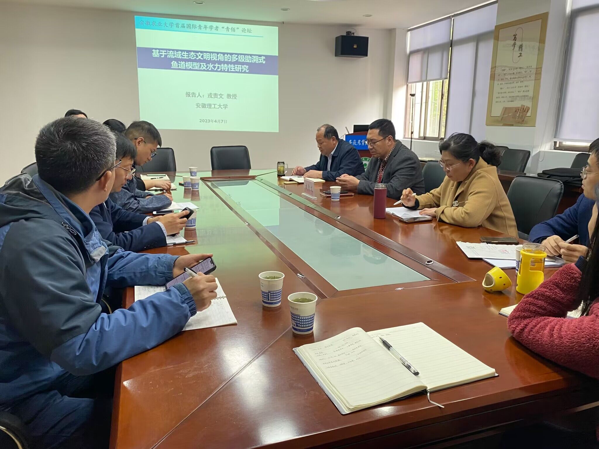 本网讯 47日下午,安徽理工大学流域水资源与河湖健康研究所首席专家戎贵文教授应邀做客15vip太阳集团官网“精匠讲堂”作了题为《基于流域生态文明视角的多级助溯式鱼道模型及水力特性研究》的学术报告土木水利系教师和部分研究生参加了报告会
